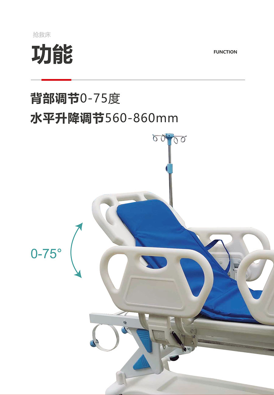 由高強度鋁合金制成,重量輕、便用安全、易清洗; 擔架面與床體采用分離結構,擔架可單獨使用 配有輸液桿 主要適用于醫(yī)院病房轉移傷員病之用。...