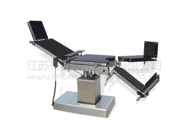 供醫(yī)院手術室施行頭、頸、胸腹腔、會陰及四肢等外科及婦產科、五官科、骨科等手術。雙層臺面可配X光機。腿板可下折外展90°,可拆卸,十分便于泌尿科手術。臺面升降、前后傾、側傾、背板折轉均由電動推桿實現,操縱靈活,安全可靠。